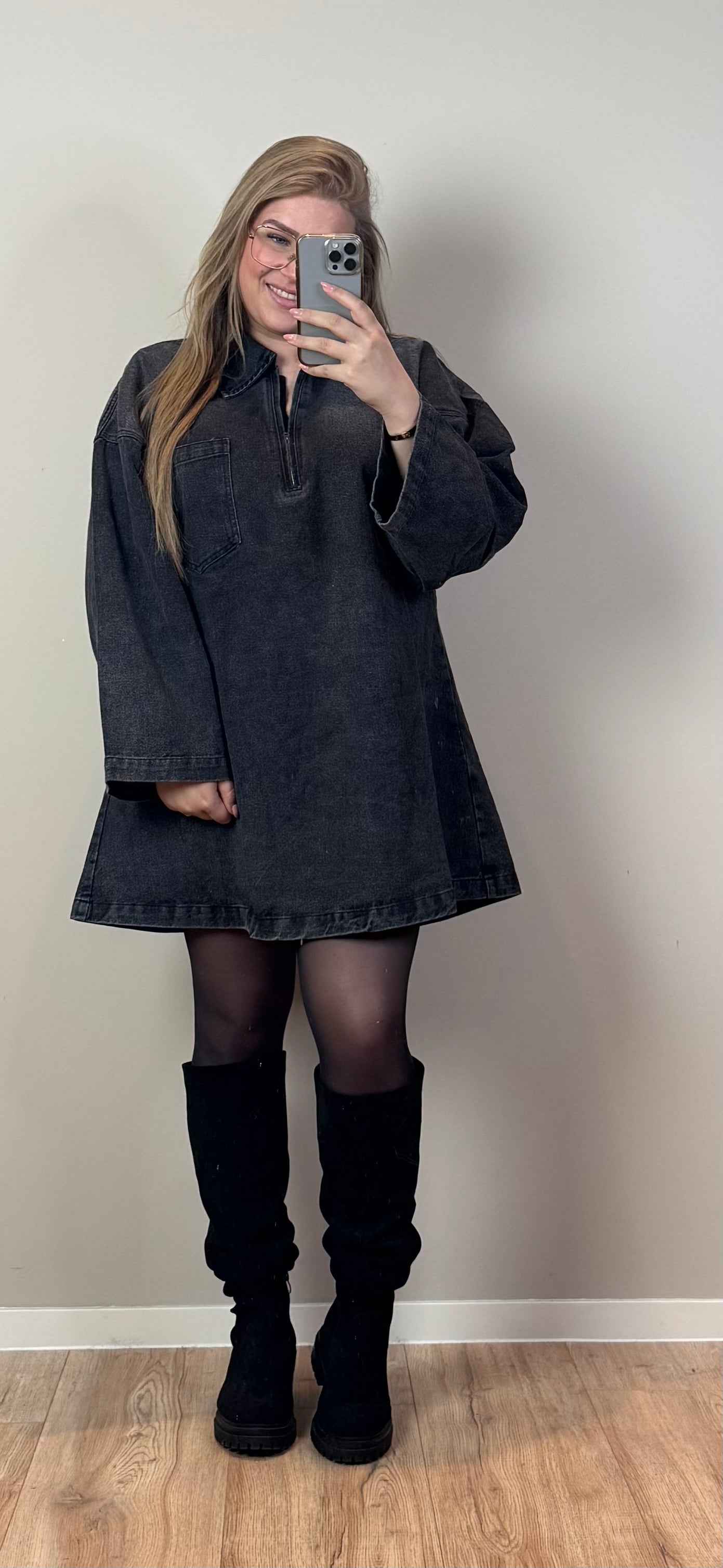 Oh oh meiden.. deze denim dress schrééuwt mijn naam ALL-OVER! Ik ben zó onwijs gek op dit soort modelletjes! En dan nog niet gesproken over de kwaliteit en afwerking.. wát is de jurk van een onwijs mooie en zware kwaliteit denim gemaakt! Totally OBSESSED! Zo onwijs prachtig. Hij valt in een super mooie A-lijn, heeft een heerlijke oversized fit, een borstzakje en een rits naar de kraag toe. Plus nog eens oversized mouwen, welke de jurk helemaal af maken als je het mij vraagt! Combineer 'm met een fijne panty en hoge boots of straks in het voorjaar heerlijk met blote benen. Als je je niet comfortabel voelt om het als jurkje te dragen kun je 'm ook perfect met je norfy legging combineren als tuniek! Let op babe, lees de maatbeschrijving even goed door alvorens je deze topper besteld!